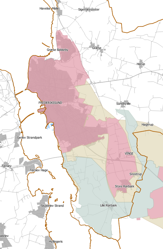 Der kan evt. i kommende planlægning arbejdes med inddragelse af nye byarealer til boligvækst i Frederikssund. Det kan f.eks. være relevant at overveje en tættere kobling af Frederikssund og Vinge på længere sigt.