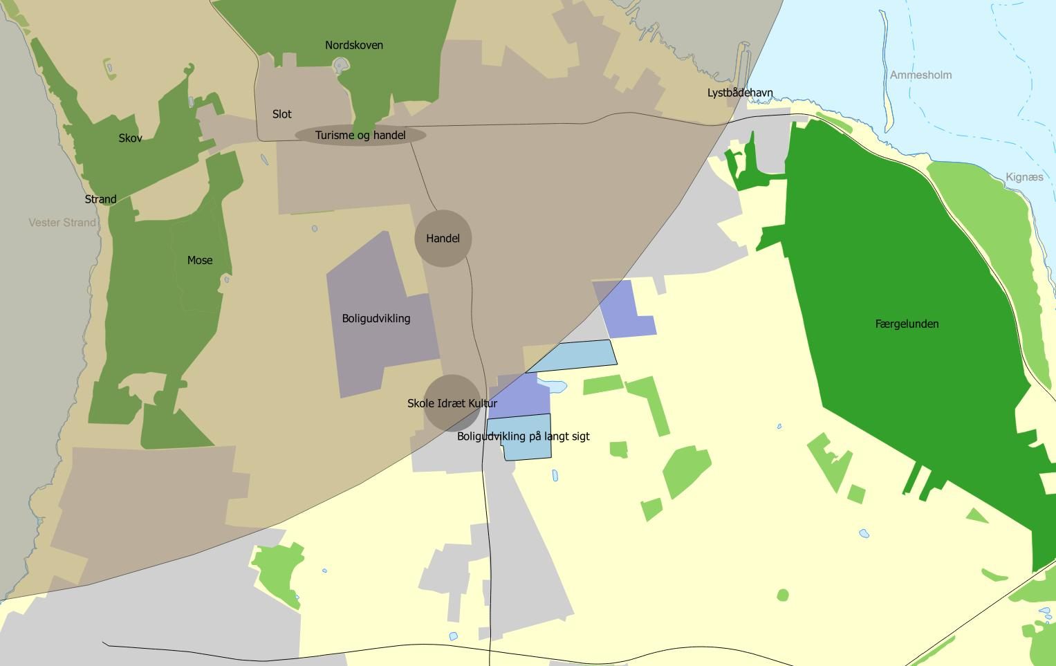 Byen har en unik tilgængelighed til det store naturområde Nordskoven, men også til Færgelunden, til fjorden ved Kignæs Havn, til Vester Strand og et attraktivt og unikt kulturmiljø omkring Slottet. I den videre byudvikling skal disse vigtige grønne træk i byen fastholdes og der skal sikres tilgængelighed til dem fra såvel gamle som nye byområder.