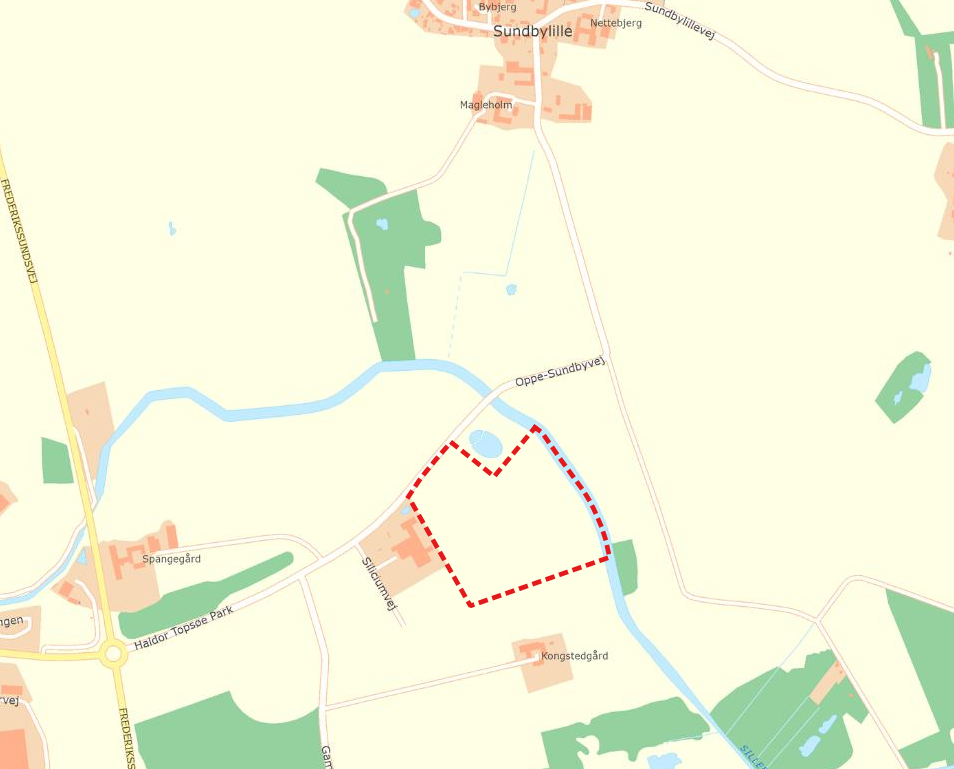Området ligger umiddelbart syd for vejen Haldor Topsøe Park og syd for Novafos´s regnvandsbassin (B920-1). Mod vest ligger virksomheden TGW og mod øst grænser området op til Sillebro Å. Mod syd grænser området op til markerne omkring Kongstedgaard.